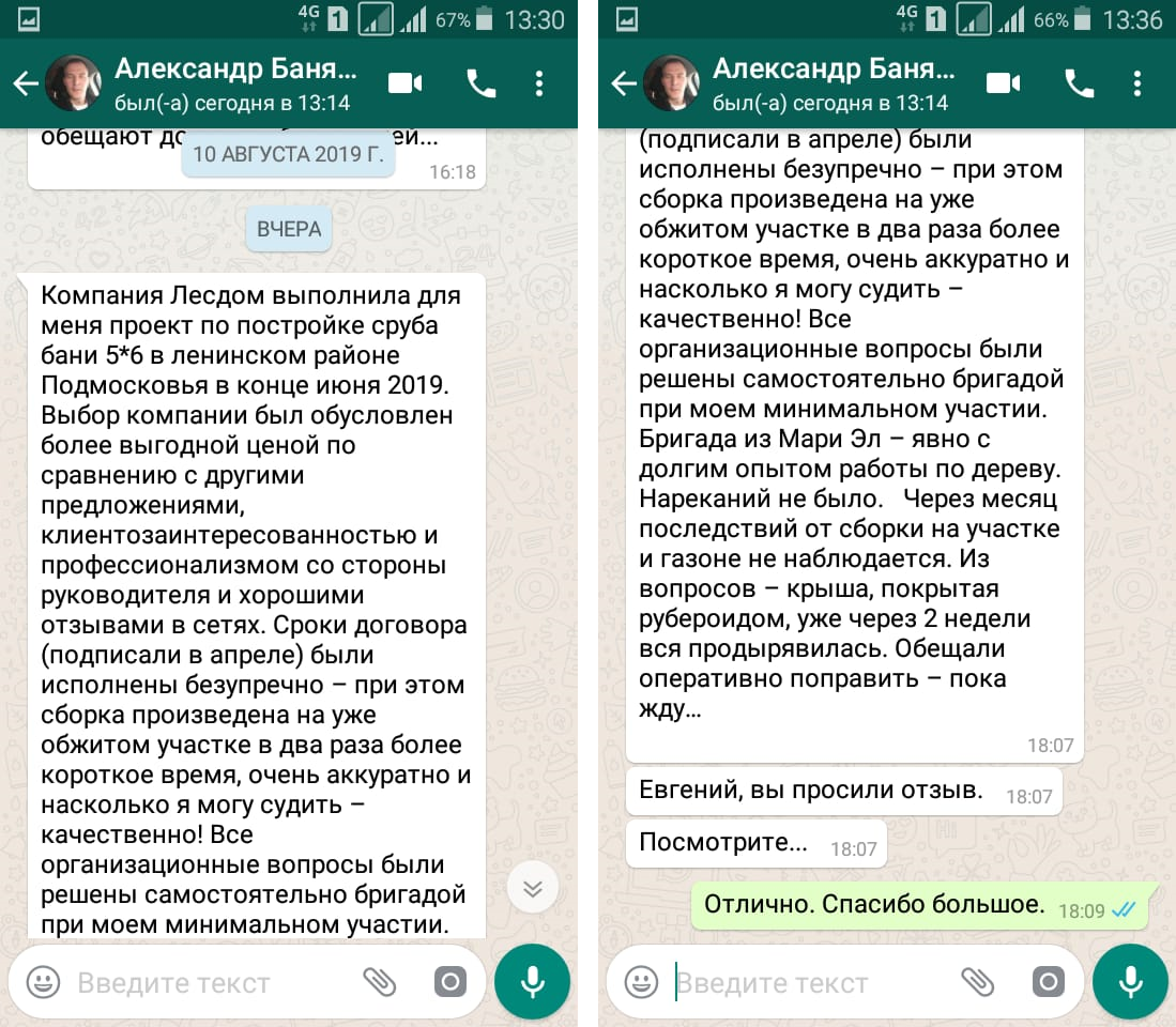 Отзыв о строительстве бани по проекту ОБ-201 от 10 августа 2019 года.Вы так же можете посмотреть все отзывы нашихклиентов в специальном разделе